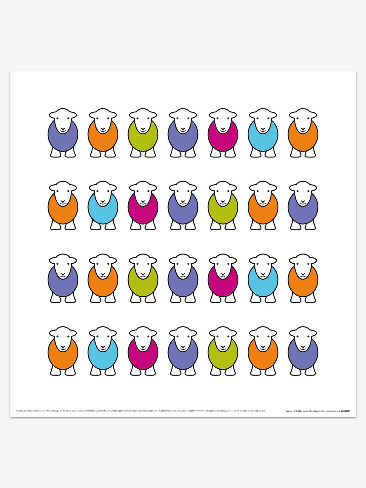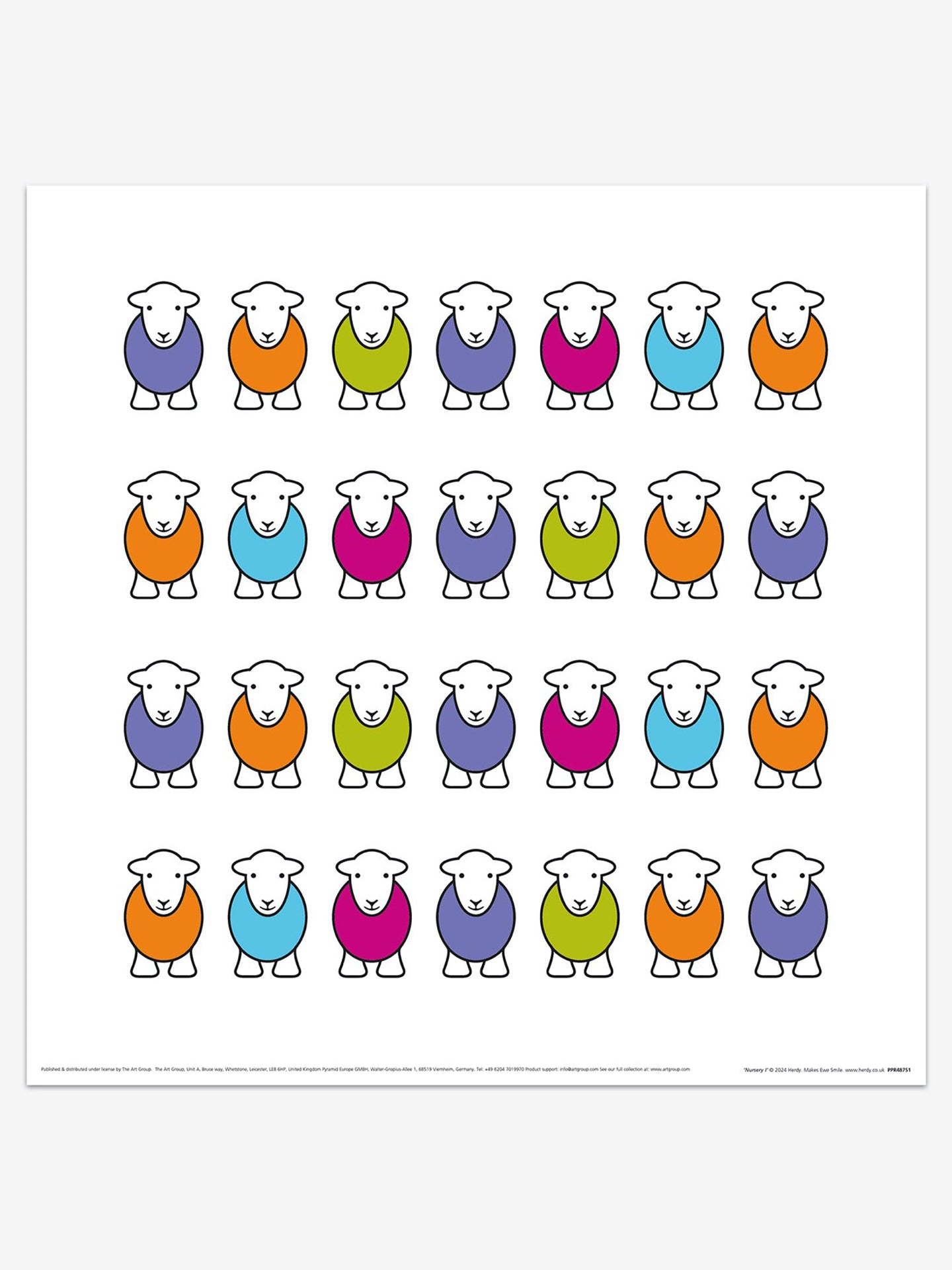 Herdy’s Marra design features a single Herdy character right the way through to an adorable flock. These cute and lovable prints are the perfect finishing touch for a nursery or a children’s room.