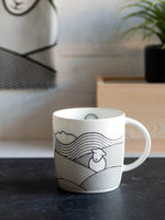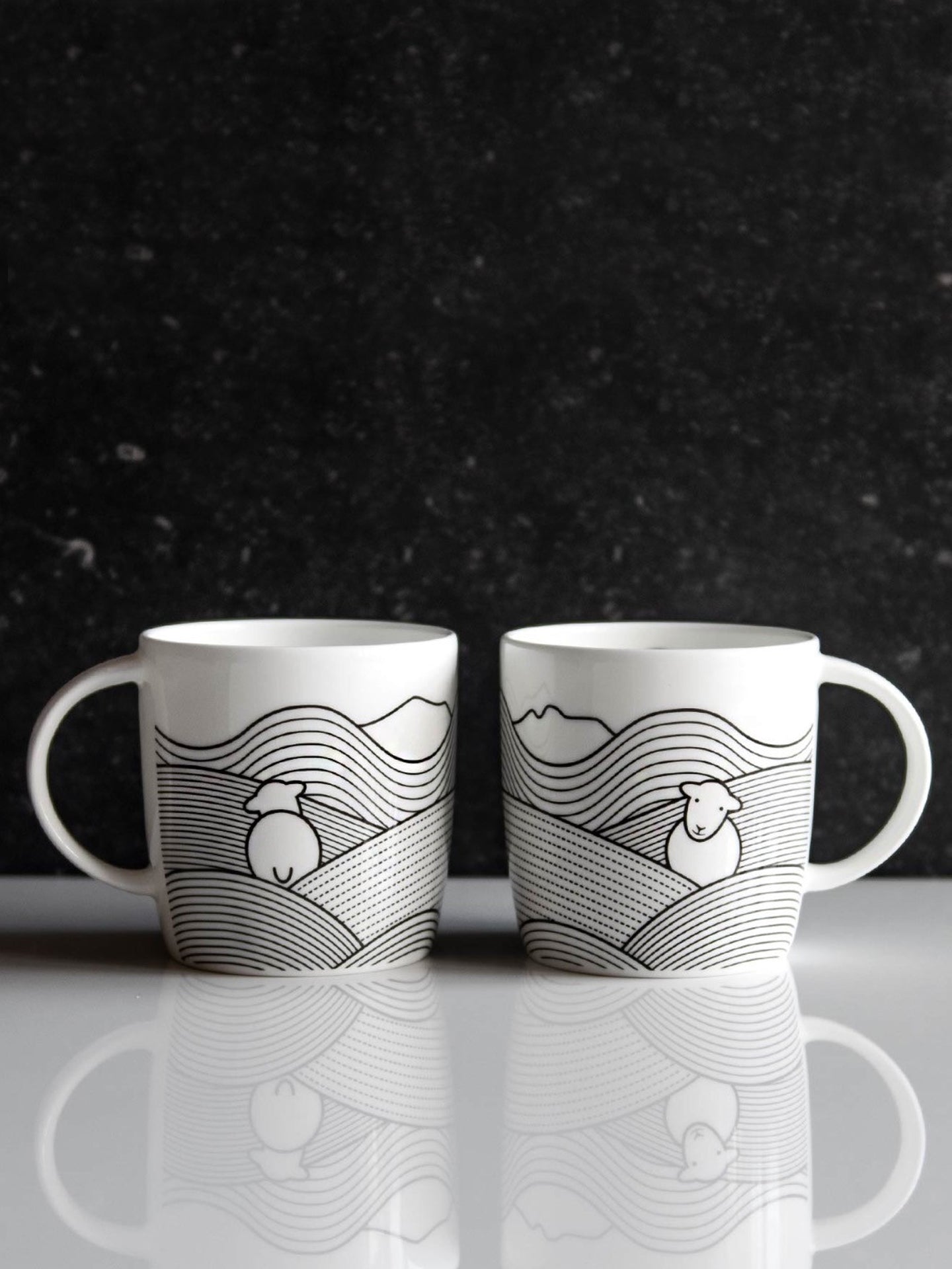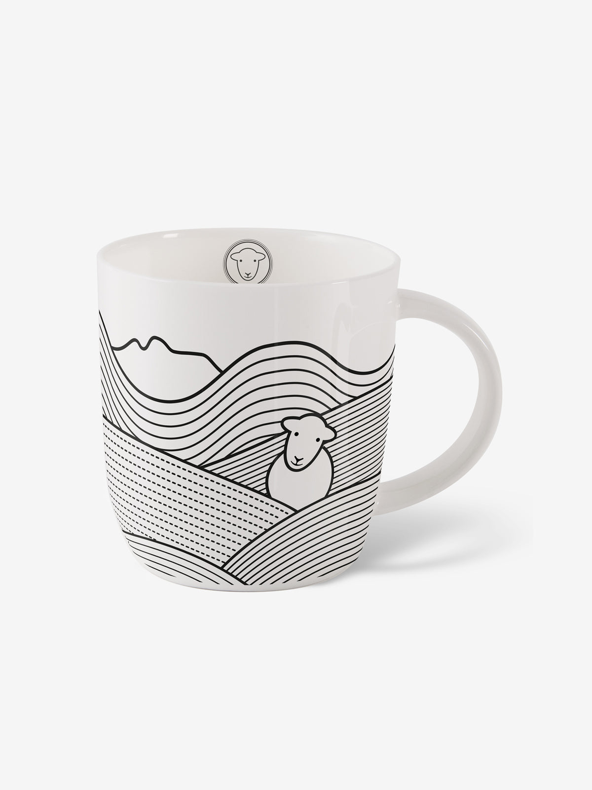 Historic graphite mining in the Lake District is the inspiration behind the design on this striking black and white, fine bone china mug, featuring Herdy amidst the undulating landscape of the Cumbrian Fells.